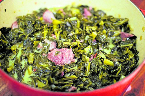 Haines called the dish “A Collard Collaboration, where the influences of my black and Filipino grandmas meld into a single pot of greens.”