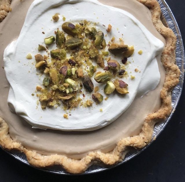 The Earl Grey pie Anton Panajon had at The Pie Hole in Los Angeles left a mark on his palate that years later, he found himself recreating and selling it. “I had so many iterations of the pie crust before I got to where I liked it,” he says. The delicate pie base holds a layer of Earl Grey creme patisserie topped with roasted pistachios.