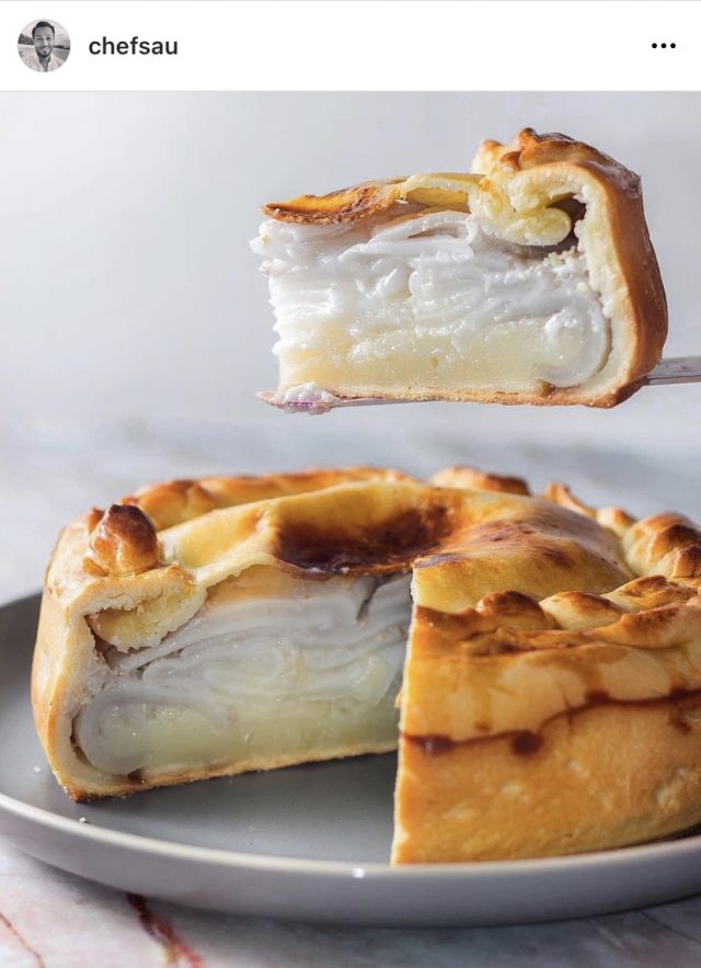 “I hate baking but during the lockdown, I had a lot of time so I challenged myself to do my least favorite thing to do,” says the chef. “It started with the buko pie. I did not have the proper pastry pan for it, so I used a springform cake mold and recreated the famous pie by having multiple layers and styling it the French way.” He cheekily named it the Vuco Fye.