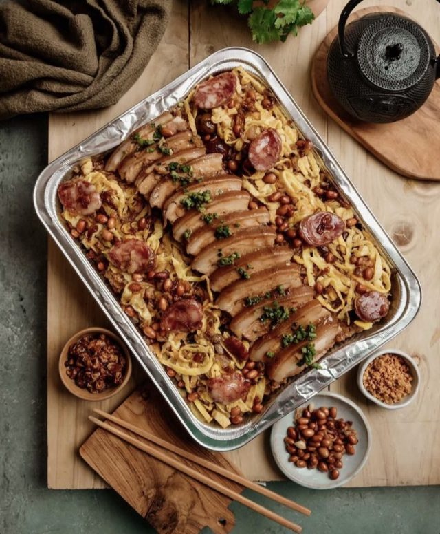 There are many versions of this one-pot “salty rice.” For CNY, it’s better to go lavish to attract abundance throughout the rest of 2021. The kiampong of Carlito’s Catering is exactly that. Long grain and glutinous rice, pork, black mushroom and mustasa leaves are cooked in a stock, then generously topped with egg slivers, peanuts, fried shallots and thick-cut pork belly.