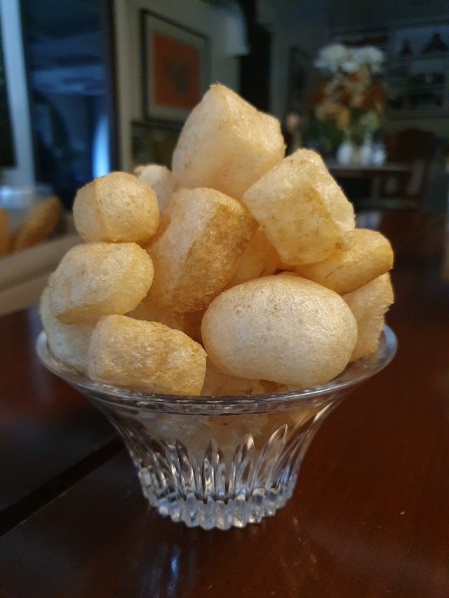 Have you tried Chicha-rabao? This chicharon is made from carabao skin. Unlike chicharon as we know it, carabao skin, when dried and fried, transforms into light, crisp, airy puffs that crumble then melt in the mouth. Its faint gamy aftertaste is quite pleasant and makes it unique.