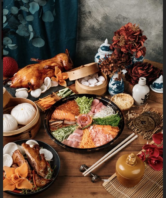 It is auspicious to indulge in certain types of food during the Lunar New Year. Lo hei yusheng is an example.