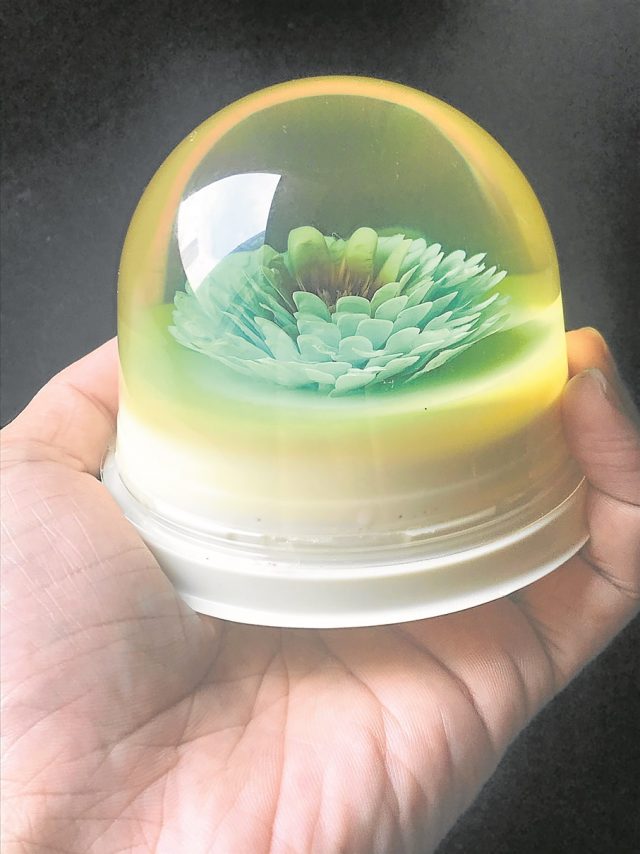 Jamie Uy has always been into art, this time edible art. She discovered the wonders of gelatin and turned it into hobby she could earn from. Her snow globes are a mix of jello and cheesecake, each handcrafted with edible flowers made of colored and flavored gelatin. Each bloom, which takes her half an hour to finish, is meticulously designed so that no two snow globes are ever the same. (Jamie’s Artisan Blooms, tel. 0956-5291410)
